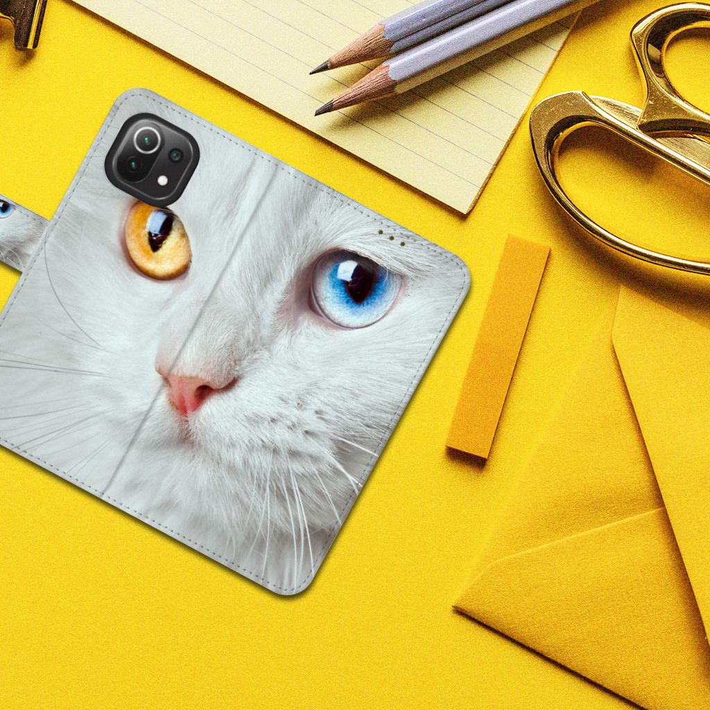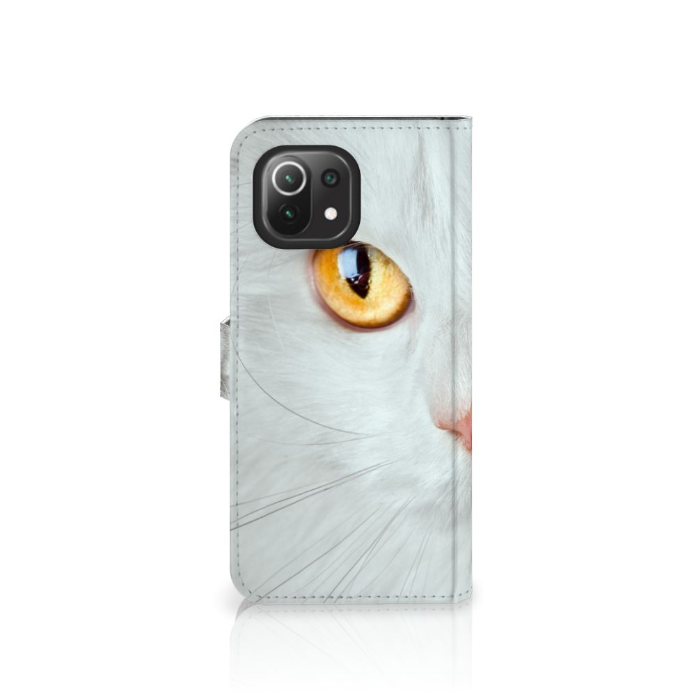 Xiaomi 11 Lite 5G NE | Mi 11 Lite Telefoonhoesje met magnetisch lipje als sluiting Witte Kat