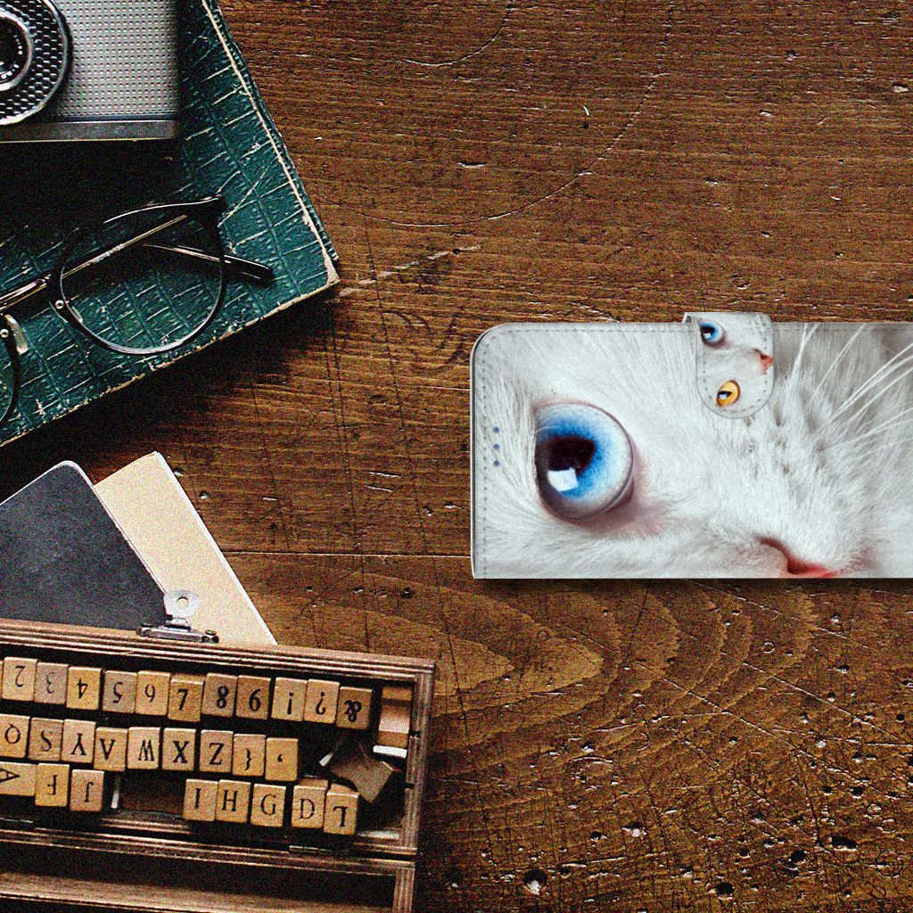 Witte katten zijn erg bijzonder en dat is precies de reden dat wij deze op prominente wijze op dit design hoesje hebben geplaatst. Maar deze witte kat is extra speciaal, doordat de ogen twee verschillende kleuren hebben: blauw en vurig rood. Hiermee heb jij als uniek mens ook een unieke bookcase. Ook de manier waarop dit telefoonhoesje voor de Xiaomi 11 Lite 5G NE | Mi 11 Lite is bedrukt, is bijzonder. Je ziet namelijk een kleinere versie van dezelfde kat terug op het lipje. Hierdoor zie je de speciale witte kat twee keer terugkomen op jouw hoesje. Omdat je waarschijnlijk een dierenliefhebber bent als je dit Telefoonhoesje met Pasjes uitkiest, is dit ook een erg duurzaam hoesje. Het hoesje wordt aan alle kanten met duurzame inkt bedrukt.