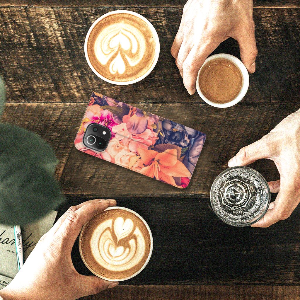 Dit Bosje Bloemen doet een mens en zijn smartphone goed. De oranje, paarse en roze bloemen op deze Xiaomi 11 Lite NE 5G | Mi 11 Lite Smart Cover geven jouw smartphone een zeer sierlijke uitstraling. Je wordt er ook meteen vrolijker van als je aan het appen, mailen of aan het bellen bent. Valt dan je telefoon op de grond, dan zal er dankzij de stand case met oranje, paarse en roze bloemen geen schade ontstaan. Onze stand cases met oranje, paarse en roze bloemen bieden de allerbeste bescherming en zijn heel praktisch, wat blijkt uit onder meer het vakje aan de binnenkant en de handige standaard waarmee je de smartphone rechtop op tafel neer kunt zetten. De oranje, paarse en roze bloemen passen goed op alle zijden van de case. Op deze stand case van leer en TPU (houder aan de binnenkant) is het ook mogelijk je eigen ontwerp te zetten. In no time maak je zelf een stand case met daarop foto’s van jouw favoriete bloemen.
