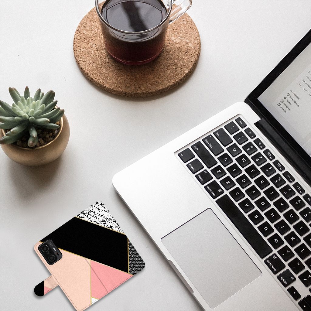 Xiaomi 11T | 11T Pro Bookcase met ruimte voor 3 pasjes Zwart Roze Vormen