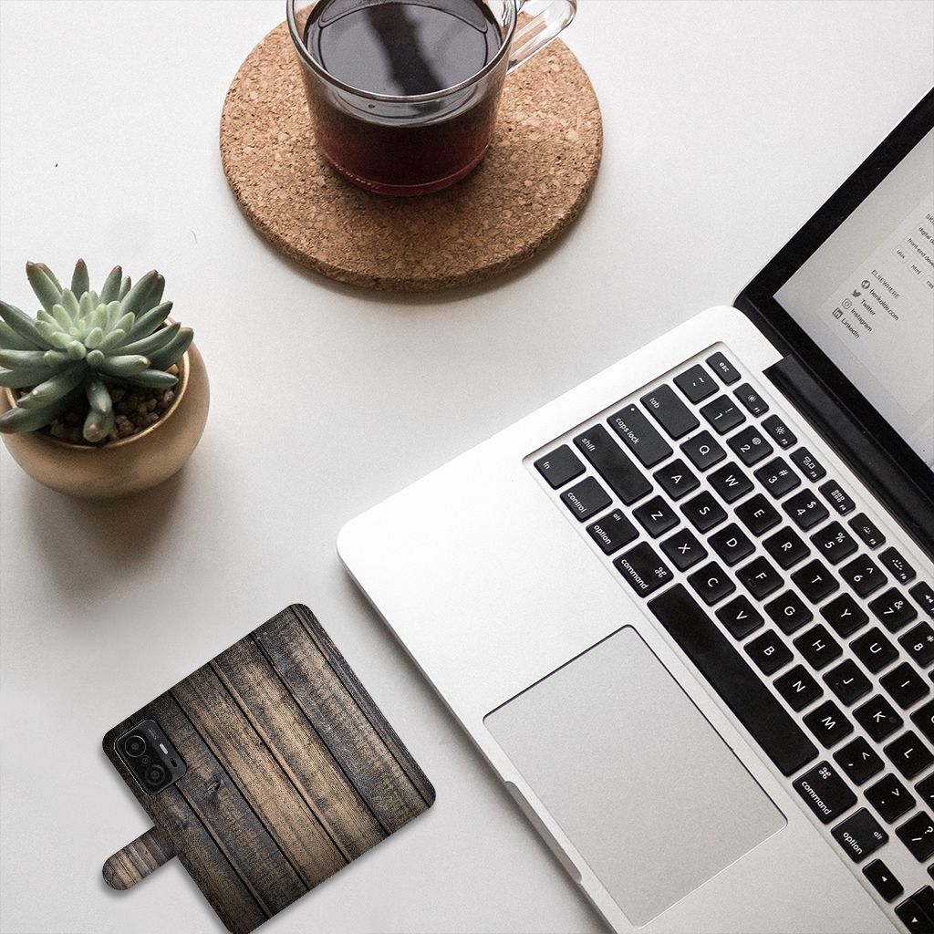 Xiaomi 11T | 11T Pro Bookstyle Case met ruimte voor 3 pasjes Steigerhout