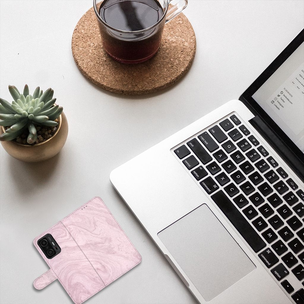 Xiaomi 11T | 11T Pro Bookcase met magnetische sluitclip Marble Pink