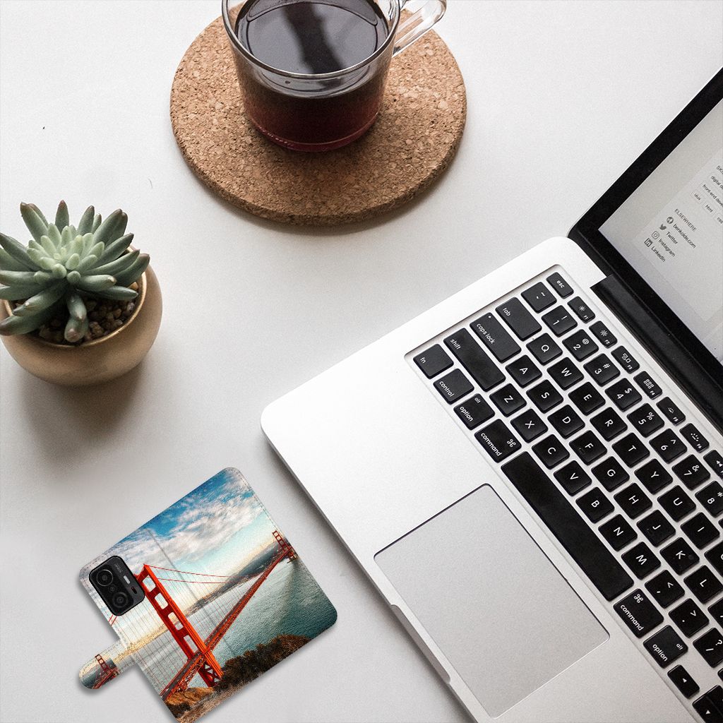 De Golden Gate Bridge is een technisch meesterwerk. Een van de langste en hoogste hangbruggen ter wereld is een schitterend staaltje van ingenieurskunst en een prachtig monument, dat met de rode kleur fel afsteekt tegen de omgeving. Dit monument komt op een fraaie manier tot uitdrukking op een Xiaomi 11T | 11T Pro. Het telefoonhoesje met design heeft verschillende vakjes, waarin je pasjes en briefgeld kunt stoppen. Jouw telefoon past precies in de houder van TPU. De Golden Gate Bridge is vanuit vele plekken in en rond San Francisco op een spectaculaire manier zichtbaar. Een deel van de brug komt ook op het lipje te staan, dat jouw Flip Cover aan de buitenkant perfect afsluit. Jouw telefoon is dus aan alle kanten beschermd met dit design hoesje met Golden Bridge print. Alle kanten van het telefoonhoesje worden bedrukt met foto’s.