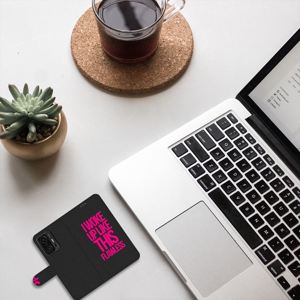Met dit zwarte Xiaomi 11T | 11T Pro Hoesje met naam met paarse tekst heb je een geweldige bescherming van je smartphone in handen. Dit zwarte hoesje met Woke Up tekst is een must voor jouw smartphone. Met dit design hoesje tekst val je ook zeker op. Je weet ook zeker dat het hoesje exclusief is. Het design is gemaakt door B2C Telecom. Het hoesje heeft verschillende vakjes en is aan alle zijden bedrukt. Ook het lipje aan de buitenkant kan worden bedrukt. De houder is van TPU, de buitenzijde van PU-leer. We willen je er ook op wijzen dat je zelf een hoesje kunt ontwerpen, met eigen beelden en teksten. Met onze Phone Case Designer kun je zelfs opvallende effecten, patronen en clip arts aan het ontwerp toevoegen.