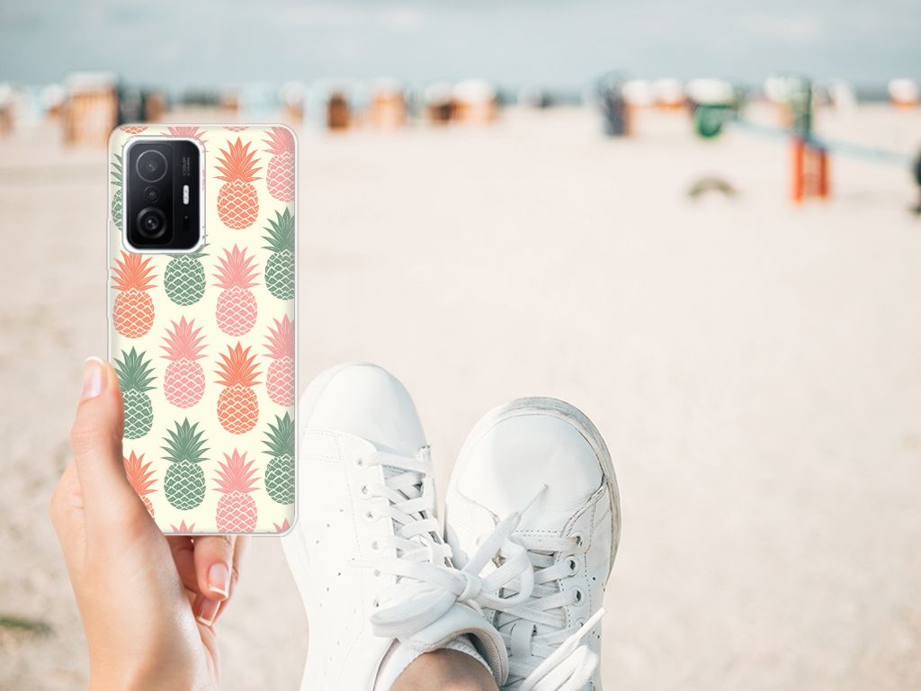 Ananas is een woord uit het Tupi, de taal van de Tupi-indianen, en betekent uitmuntende vrucht. Dit fruit van zeer hoge kwaliteit staat op onze superieure boekhoesjes, stand cases, hard cases en TPU cases. Jij blijft er gezond uitzien als je zo nu en dan een hap neemt van een Ananas , jouw smartphone blijft tip top in orde als je er een leuk telefoonhoesje omheen doet. Een ananas heeft stevig, veerkrachtig vruchtvlees. Een beetje te vergelijken met het TPU in onze hoesjes. TPU is elastisch materiaal, dat zeer buigzaam is. Vandaar dat het zeer schokbestendig is. Het ananas design staat op een staat op een TPU case. Deze Xiaomi 11T | 11T Pro Siliconen Case wordt alleen aan de bovenkant bedrukt en is zeer flexibel. De randen van het hoesje blijven transparant.