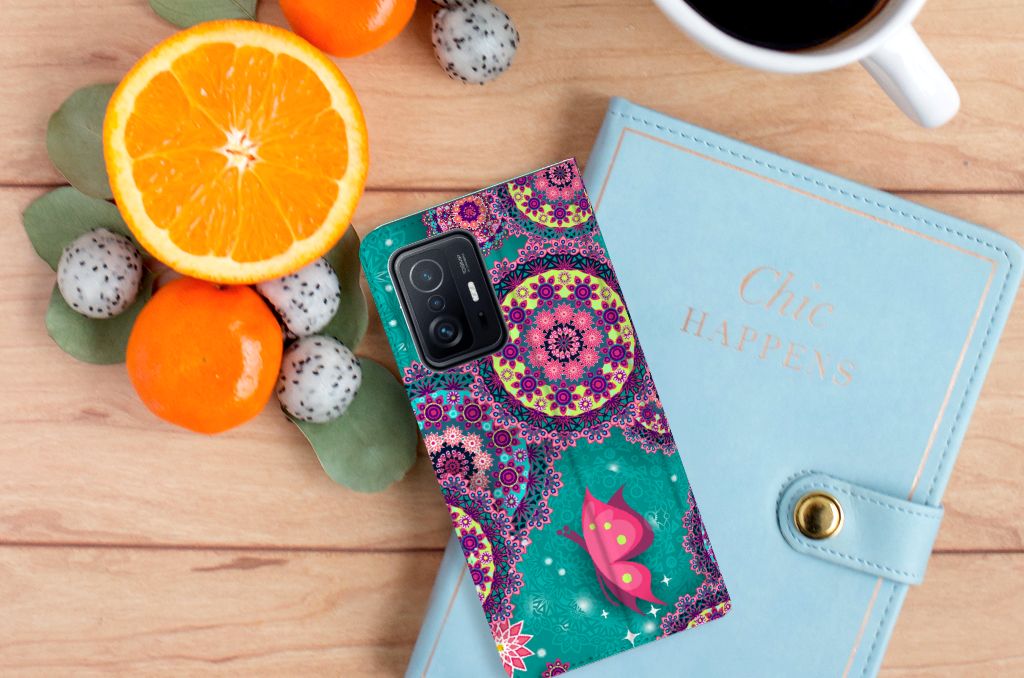 Deze opvallende Xiaomi 11T | Xiaomi 11T Pro Bookcase met Cirkels en Vlinders is een ware eyecatcher. De meeste vlinders hebben een onopvallende vleugelkleur en dat kun je van de soort op dit hoesje ook zeker wel zeggen. Wij kunnen deze opvallende vlinders en cirkels op een zeer handige stand case zetten. Deze hoesjes zijn zeer gewild. Met onze geavanceerde printer zetten we de print van opvallende vlinders en cirkels op alle zijden van het hoesje. De case met vlinders heeft aan de binnenkant een houder waarin je jouw creditcard of ander pasje kwijt kunt. De case heeft bovendien een handige standaard. Verder is je telefoon natuurlijk maximaal beschermd met deze stand case met print van opvallende en kleurrijke vlinders. De houder aan de binnenzijde van het design hoesje met opvallende vlinder print is van TPU.