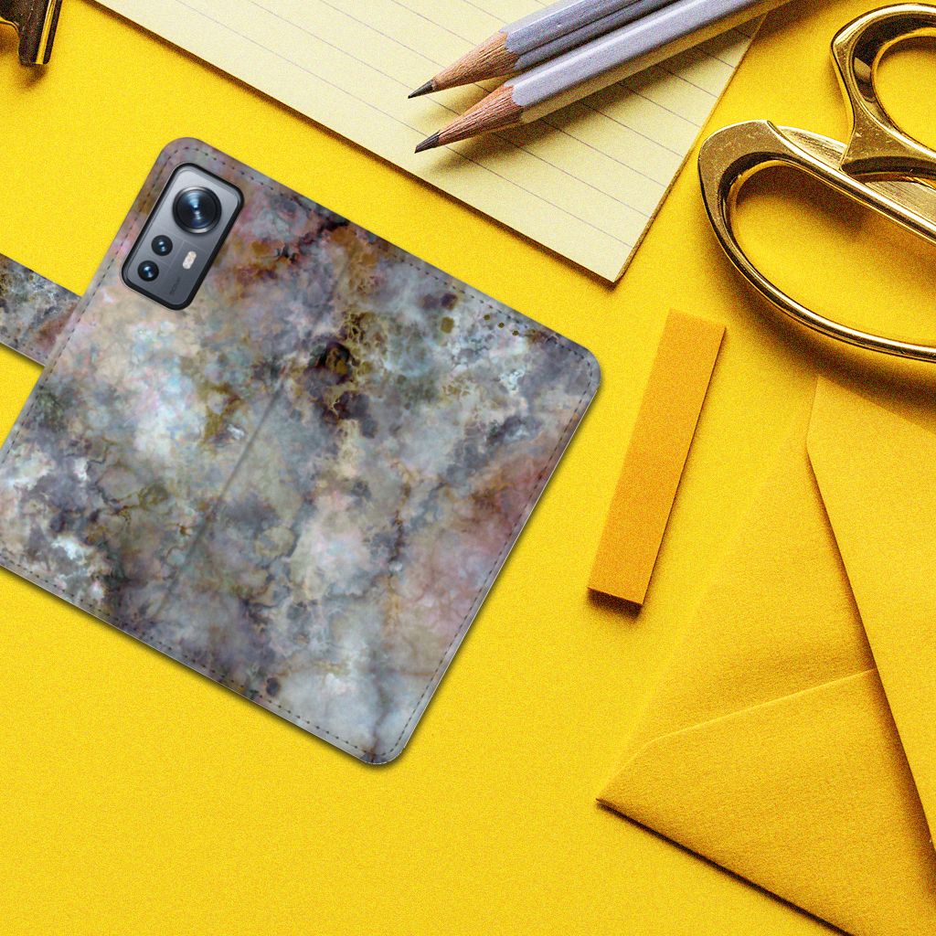 Xiaomi 12 | 12X Bookcase met ruimte voor 3 pasjes Marmer Grijs