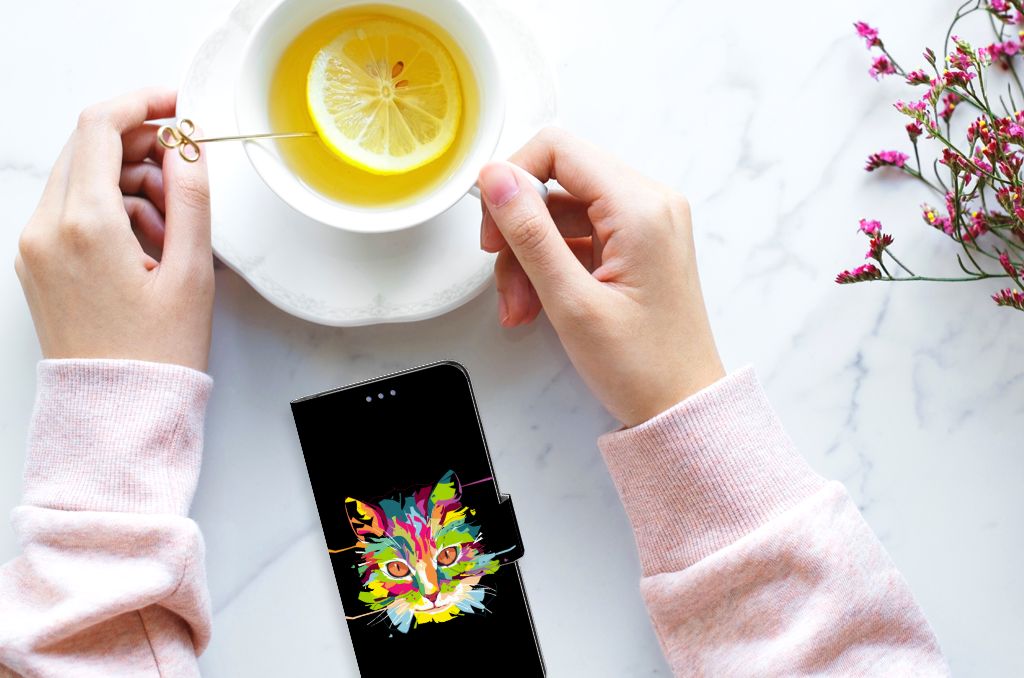 Als jij van katten houdt en op zoek bent naar een uniek hoesje, dan is dit het hoesje wat je wilt hebben. Op de voorkant van dit Leuk Hoesje vind je namelijk een mooie afbeelding van een kat in alle kleuren van de regenboog op een zwarte klassieke achtergrond. Naast dat het een mooi hoesje betreft, is het ook nog eens ontzettend handig. Zo kun je in deze bookcase wel twee á drie pasjes en briefgeld kwijt. Hiermee kun je jouw belangrijkste bezittingen op een plek bewaren in het boekhoesje en kun je jouw portemonnee voortaan thuislaten. Een bookcase heeft daarnaast ook nog het voordeel dat jouw telefoon aan alle zijdes wordt beschermd in dit leuke hoesje, dubbel zo handig dus!