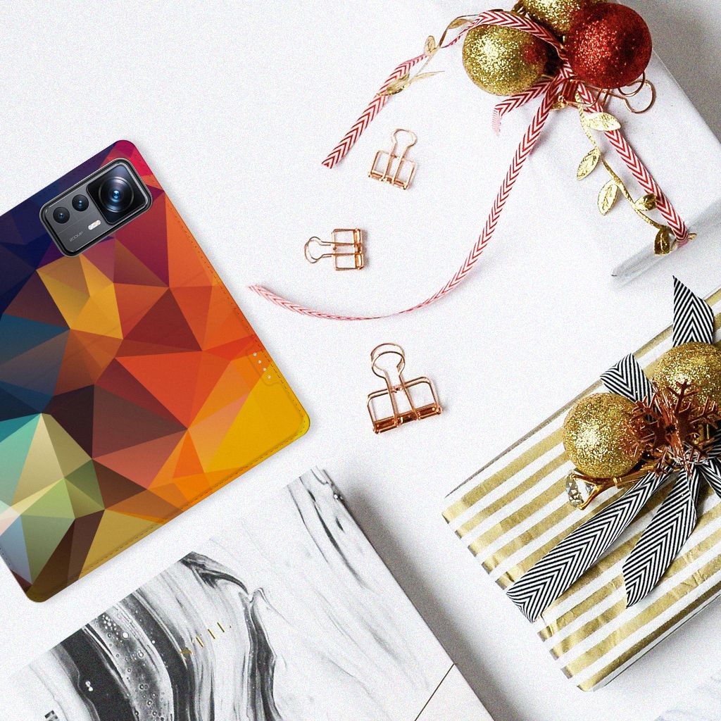 Veelkleurige driehoeken die samen eindeloze asymmetrische patronen lijken te vormen. Het is het abstracte schouwspel dat op dit fraaie hoesje voor je Xiaomi 12T | 12T Pro direct de aandacht trekt noemen we voor het gemak trekt noemen we voor het gemak Polygon Color. De een ziet er een berglandschap in, de ander piramides. Wat zie jij erin? Zeker is in elk geval dat de aanblik van dit fascinerende ontwerp je niet snel gaat vervelen. Het kleurige spel van lijnen en vlakken blijft eindeloos boeien en geeft jouw Stand Case een hippe en kunstzinnige uitstraling. De kracht die het lijnenspel uitstraalt, komt ook terug in het hoesje zelf. De solide hoes van PU-leer beschikt ook over een 1 pashouder en een speciale standaard. Het hoesje wordt afgesloten met een magneet aan de binnenzijde. De houder aan de binnenzijde is van TPU. Alle zijden worden bedrukt.