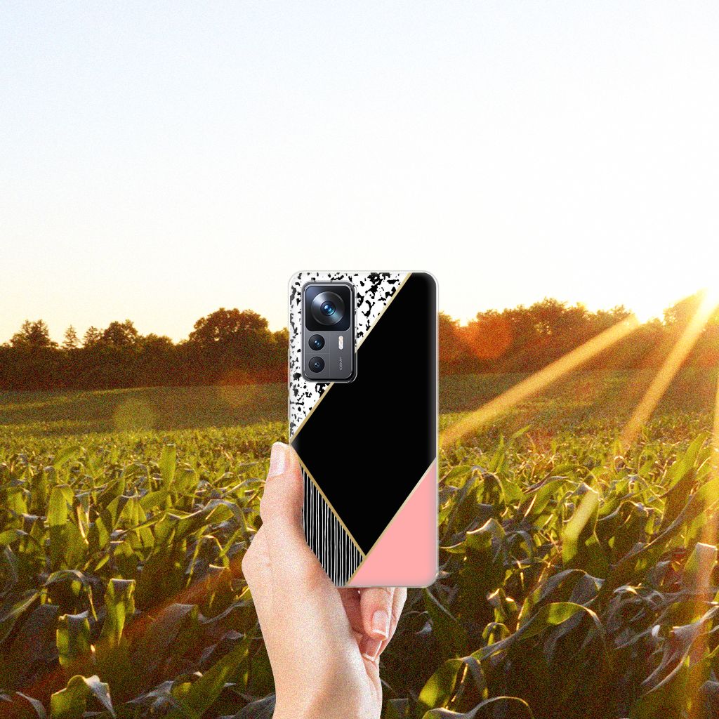 TPU Hoesje Xiaomi 12T | 12T Pro Zwart Roze Vormen Design