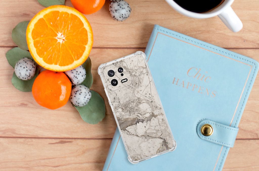 Xiaomi 13 Anti-Shock Hoesje Marmer Wit Zwart - Origineel Cadeau Man
