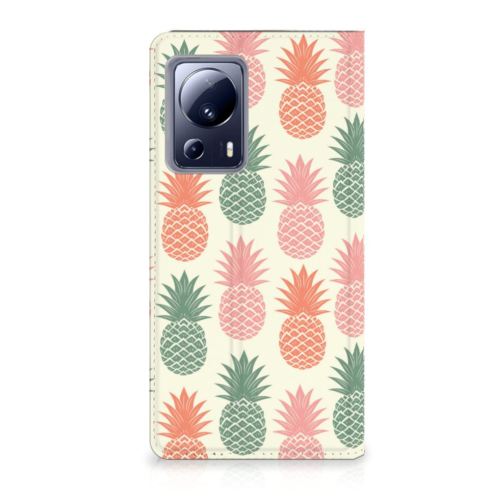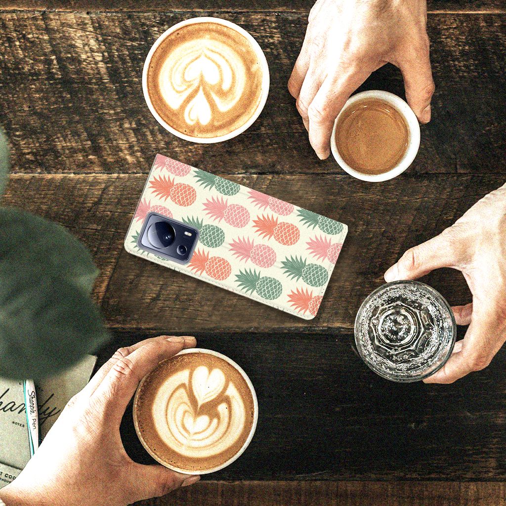 Ananas is een woord uit het Tupi, de taal van de Tupi-indianen, en betekent uitmuntende vrucht. Dit fruit van zeer hoge kwaliteit staat op onze superieure boekhoesjes, stand cases, hard cases en TPU cases. Jij blijft er gezond uitzien als je zo nu en dan een hap neemt van een Ananas , jouw smartphone blijft tip top in orde als je er een leuk telefoonhoesje omheen doet. Een ananas heeft stevig, veerkrachtig vruchtvlees. Een beetje te vergelijken met het TPU in onze hoesjes. TPU is elastisch materiaal, dat zeer buigzaam is. Vandaar dat het zeer schokbestendig is. Het ananas design staat op een stand case. Deze Xiaomi 13 Lite Flip Style Cover beschermt jouw telefoon aan alle kanten en beschikt over een 1 opbergvakje en een speciale standaard. Het hoesje wordt afgesloten met een magneet aan de binnenzijde. De houder aan de binnenzijde is van TPU.