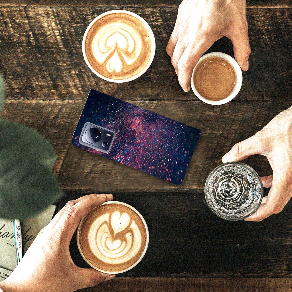 Je waant je in de zevende hemel met dit kunstzinnige, glitterachtige design hoesje met paarse en blauwe kleuren tegen een inktzwarte achtergrond. Het smartphone hoesje heeft ook een wat science fiction achtige allure. Met deze design Stars case zul je zeker opvallen. Als dit je bedoeling is, bestel dat snel dit waanzinnig mooie product voor je Xiaomi 13 Lite. Het telefoonhoesje is van alle gemakken voorzien en combineert een hele fraaie uitstraling met maximaal comfort. Bovendien is het gemaakt van zeer stevig en flexibel materiaal. Het unieke design, door B2C Telecom ontworpen, staat op een Stand Case. Deze case beschermt jouw telefoon aan alle kanten en beschikt over een 1 opbergvakje en een speciale standaard. Het hoesje wordt afgesloten met een magneet aan de binnenzijde. De houder aan de binnenzijde is van TPU.