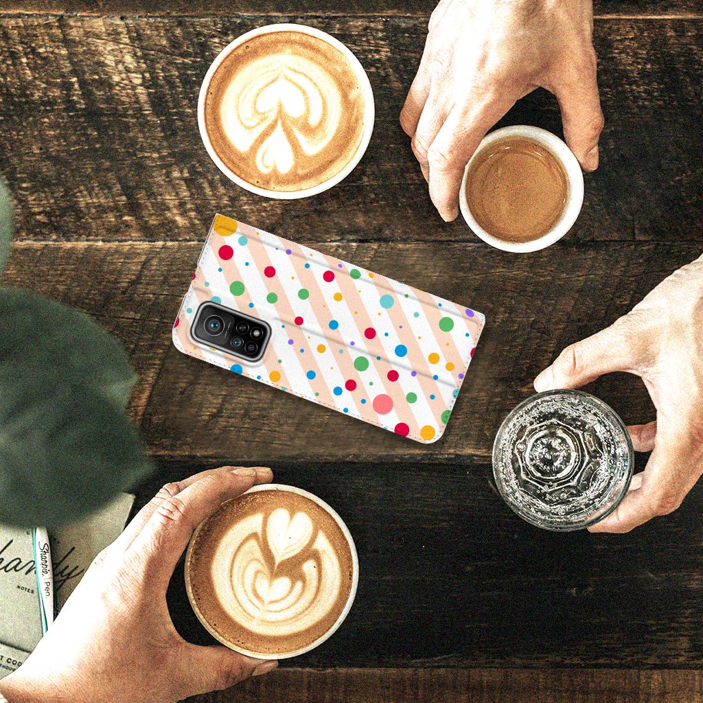 Een Xiaomi Mi 10T | 10T Pro Hoesje met Magneet met verschillende kleuren stippen is een schitterende bescherming van jouw smartphone. De stand case met het design Dots in alle kleuren van de regenboog komt voor jou als geroepen. Maak je geen gebruik van dit zeer mooie hoesje, dan kan het met jouw smartphone een beetje beroerd aflopen. Dit mooie stand hoesje met verschillende kleuren stippen zorgt voor een volledige bescherming van je smartphone en wordt aan alle zijden bedrukt. Dankzij de speciale standaard kun je rustig achteroverleunend filmpjes bekijken terwijl je je handen vrij hebt. Verder is de houder aan de binnenzijde van TPU. Jouw telefoon is dus zeer goed opgeborgen en kan geen kant op. Met een hoesje met stippen in verschillende kleuren op alle zijden blijft jouw telefoon volledig in tact. Heb je liever een stand case met stippen in andere opvallende kleuren? Ontwerp dan zelf case met je eigen foto’s en teksten!