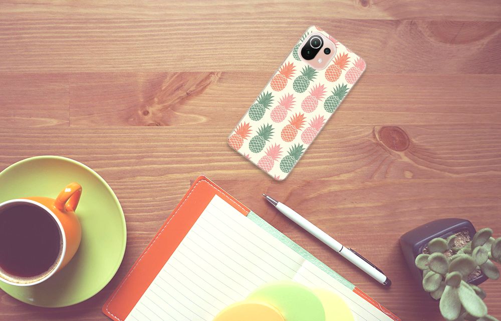 Ananas is een woord uit het Tupi, de taal van de Tupi-indianen, en betekent uitmuntende vrucht. Dit fruit van zeer hoge kwaliteit staat op onze superieure boekhoesjes, stand cases, hard cases en TPU cases. Jij blijft er gezond uitzien als je zo nu en dan een hap neemt van een Ananas , jouw smartphone blijft tip top in orde als je er een leuk telefoonhoesje omheen doet. Een ananas heeft stevig, veerkrachtig vruchtvlees. Een beetje te vergelijken met het TPU in onze hoesjes. TPU is elastisch materiaal, dat zeer buigzaam is. Vandaar dat het zeer schokbestendig is. Het ananas design staat op een staat op een TPU case. Deze Xiaomi Mi 11 Lite | 11 Lite 5G NE Siliconen Case wordt alleen aan de bovenkant bedrukt en is zeer flexibel. De randen van het hoesje blijven transparant.