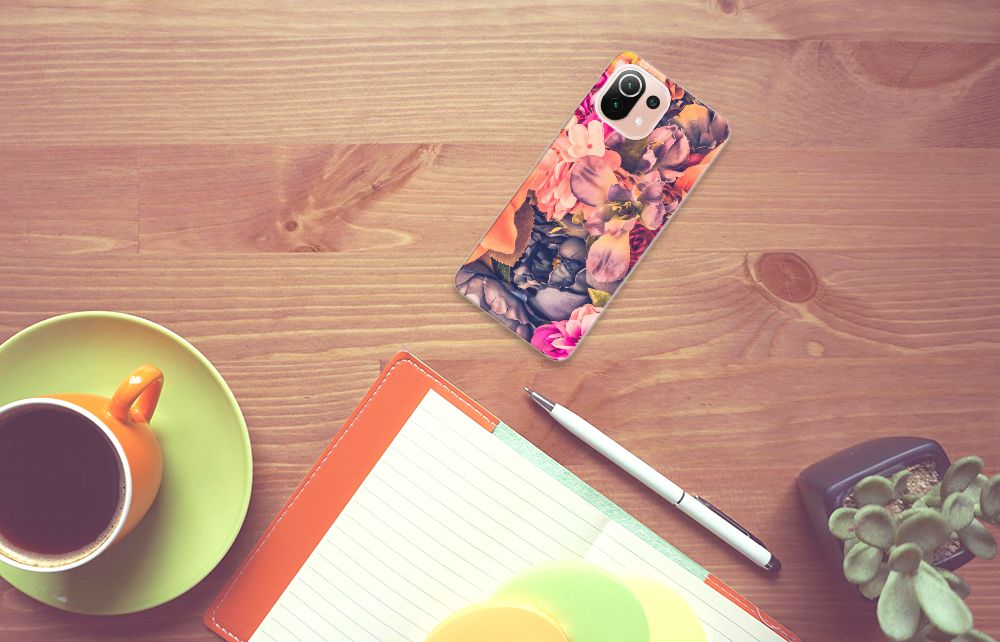Dit Bosje Bloemen doet een mens en zijn smartphone goed. De oranje, paarse en roze bloemen op deze Xiaomi Mi 11 Lite | 11 Lite 5G NE TPU Case geven jouw smartphone een zeer sierlijke uitstraling. Je wordt er ook meteen vrolijker van als je aan het appen, mailen of aan het bellen bent. Valt dan je telefoon op de grond, dan zal er dankzij de tpu case met oranje, paarse en roze bloemen geen schade ontstaan. Helemaal niet als je er een screenprotector bij hebt gekocht. Onze tpu cases met oranje, paarse en roze bloemen zien er zeer prettig uit en zijn heel praktisch, getuige onder meer de opstaande randen en het flexibele materiaal. Alleen de achterkant van de tpu case wordt bedrukt met oranje, paarse en roze bloemen. Op deze tpu case is het ook mogelijk je eigen ontwerp te zetten. In no time ontwerp je zelf een tpu case met daarop foto’s van jouw favoriete bloemen.