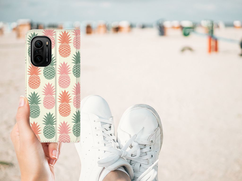 Ananas is een woord uit het Tupi, de taal van de Tupi-indianen, en betekent uitmuntende vrucht. Dit fruit van zeer hoge kwaliteit staat op onze superieure boekhoesjes, stand cases, hard cases en TPU cases. Jij blijft er gezond uitzien als je zo nu en dan een hap neemt van een Ananas , jouw smartphone blijft tip top in orde als je er een leuk telefoonhoesje omheen doet. Een ananas heeft stevig, veerkrachtig vruchtvlees. Een beetje te vergelijken met het TPU in onze hoesjes. TPU is elastisch materiaal, dat zeer buigzaam is. Vandaar dat het zeer schokbestendig is. Het ananas design staat op een stand case. Deze Xiaomi Mi 11i | Poco F3 Flip Style Cover beschermt jouw telefoon aan alle kanten en beschikt over een 1 opbergvakje en een speciale standaard. Het hoesje wordt afgesloten met een magneet aan de binnenzijde. De houder aan de binnenzijde is van TPU.