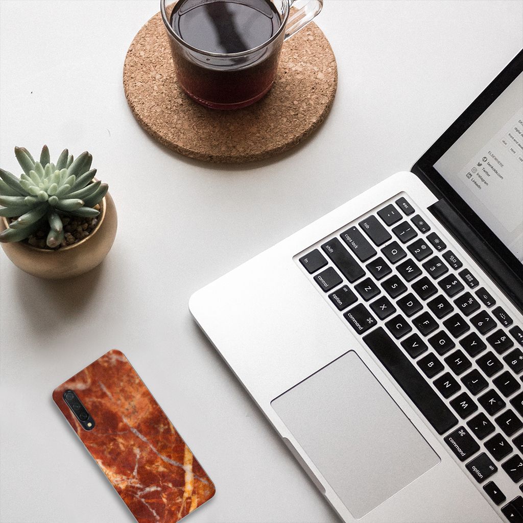 Dit design hoesje met Marmer Bruin is voor de artistieke personen onder ons. De Grieken en Romeinen wisten het al te waarderen door het als bouw- en bekledingsmateriaal toe te passen. Naast het witte Carrara marmer met haar zacht grijze geaderde belijning zijn de diverse soorten in een ruim kleurenpallet te krijgen. We hebben verschillende kleuren op design hoesjes gezet, zoals in dit geval bruin marmer. Dit is een Xiaomi Mi 9 Lite TPU Siliconen Hoesje met marmer in bruine kleur. Het marmer wordt bedrukt op de voorkant van een tpu case, die beschikt over opstaande randen aan de voorkant en heel goed combineert met een screenprotector. De rijkheid aan kleuren en varianties in afwerking geeft ontwerpers de vrijheid om met marmer hele mooie architectonische projecten te realiseren. Wij hebben onze designer ook veel vrijheid gegeven. Het resultaat zie je terug in deze tpu case met bruin marmer, die jouw smartphone goed beschermt. De zijkanten van de case worden niet bedrukt met marmer.