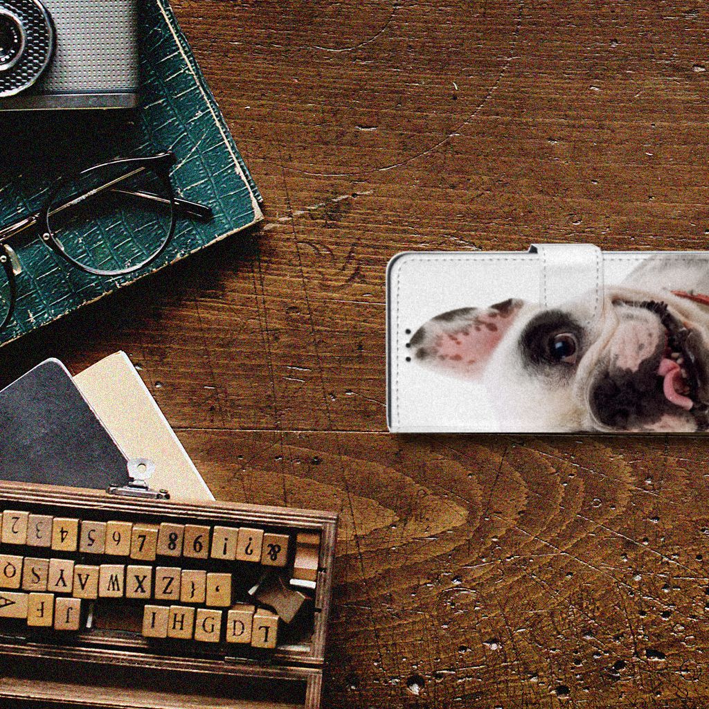 Honden zijn het favoriete dier van de mens, het is daarom alleen maar logisch om die op een telefoonhoesje te plaatsen. En op dit design hoesje staat deze schattige Franse Buldog. Maar misschien heb jij zelf wel een hond en wil je die liever op het hoesje terugzien? Met onze telefoonhoesjes ontwerper is dat geen enkel probleem. Voor dezelfde prijs kun je elke foto die je wilt op het boekhoesje laten zetten. Je kunt hierbij zelfs de naam van jouw hond of een ander stukje tekst laten drukken. Zo eindig je met een Telefoonhoesje met Pasjes wat volledig uniek en naar jouw smaak is.