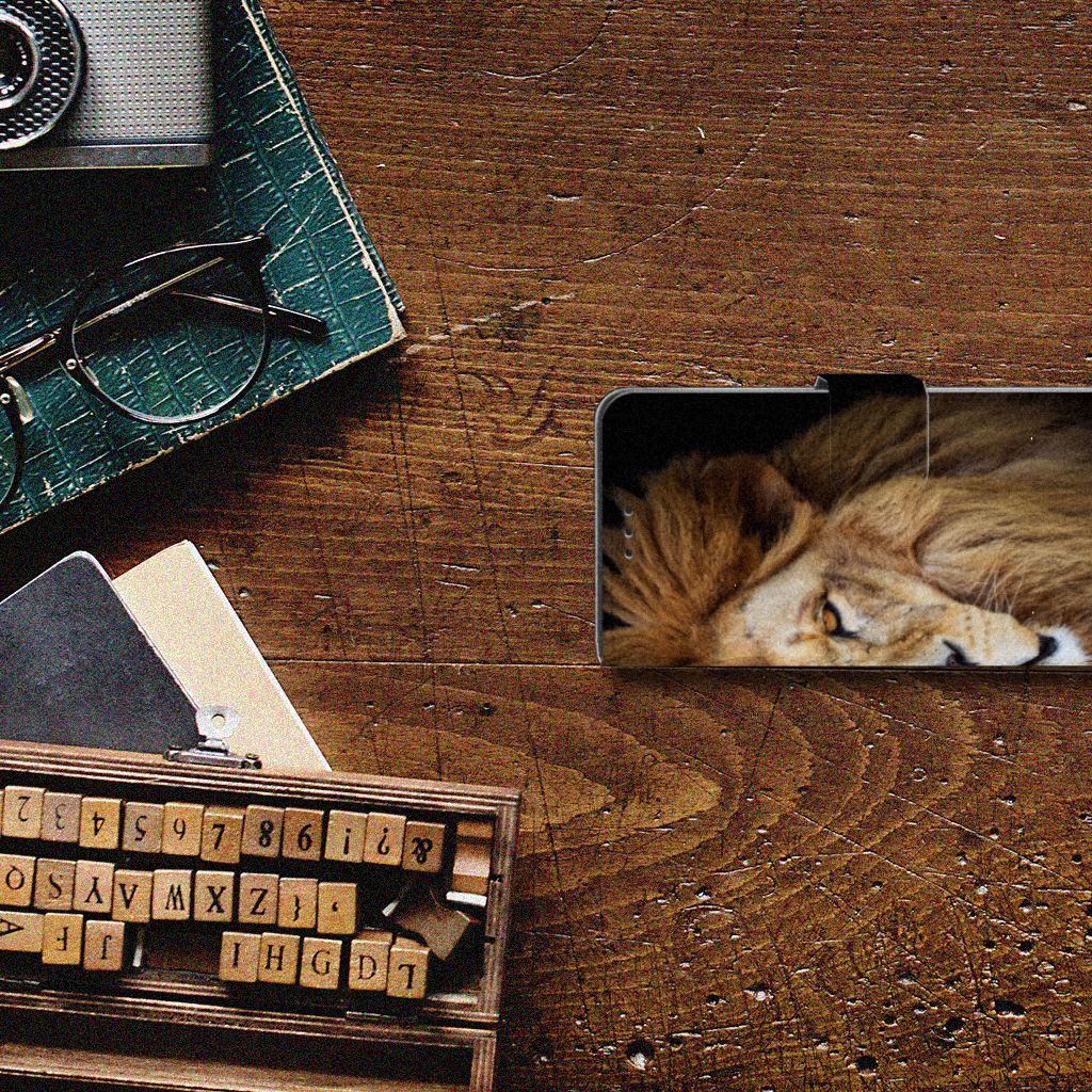 Xiaomi Mi 9 SE Telefoonhoesje met Pasjes en met magnetische sluitclip Leeuw