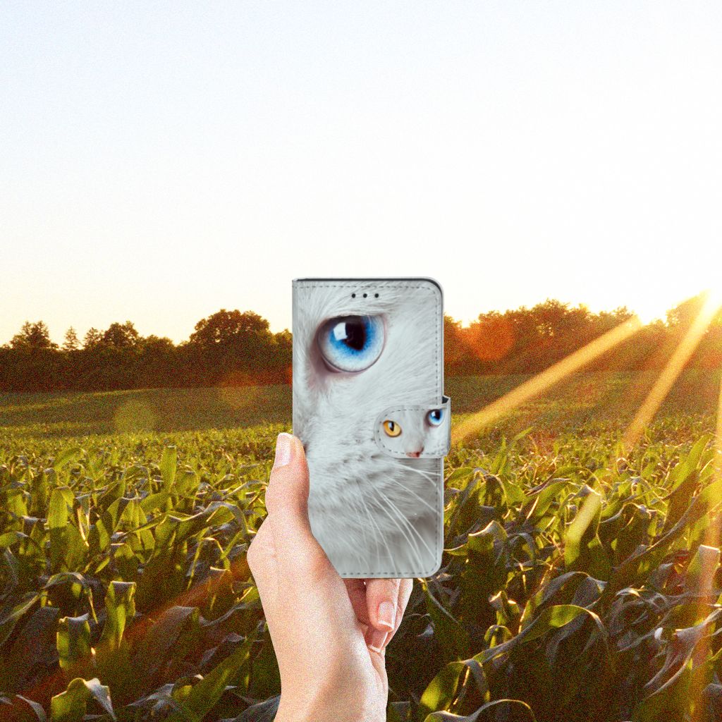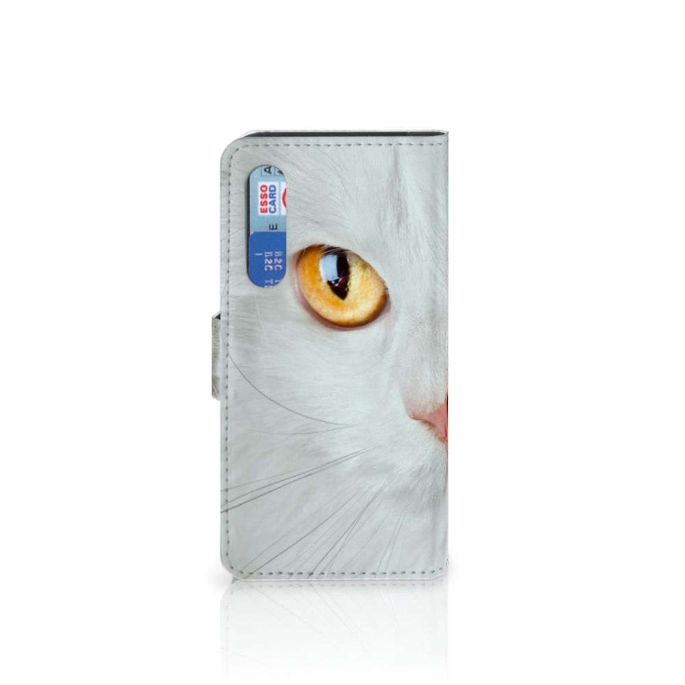 Xiaomi Mi 9 SE Telefoonhoesje met magnetisch lipje als sluiting Witte Kat