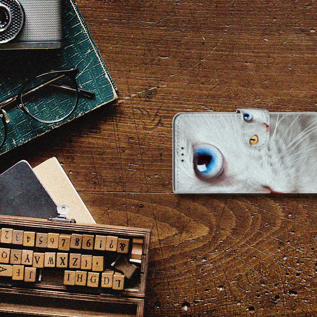Witte katten zijn erg bijzonder en dat is precies de reden dat wij deze op prominente wijze op dit design hoesje hebben geplaatst. Maar deze witte kat is extra speciaal, doordat de ogen twee verschillende kleuren hebben: blauw en vurig rood. Hiermee heb jij als uniek mens ook een unieke bookcase. Ook de manier waarop dit telefoonhoesje voor de Xiaomi Mi 9 SE is bedrukt, is bijzonder. Je ziet namelijk een kleinere versie van dezelfde kat terug op het lipje. Hierdoor zie je de speciale witte kat twee keer terugkomen op jouw hoesje. Omdat je waarschijnlijk een dierenliefhebber bent als je dit Telefoonhoesje met Pasjes uitkiest, is dit ook een erg duurzaam hoesje. Het hoesje wordt aan alle kanten met duurzame inkt bedrukt.