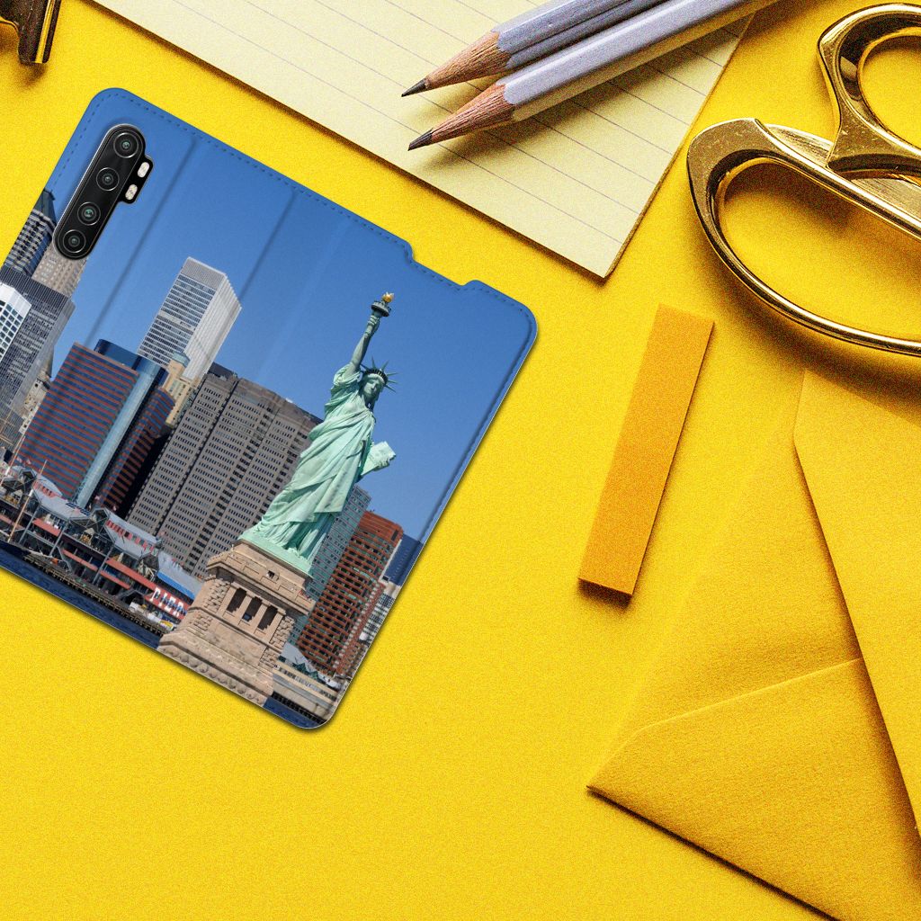 Natuurlijk mag een hoesje met de print van New York niet in onze collectie design hoesjes ontbreken. New York is immers de grootste stad van de Verenigde Staten van Amerika en een van de belangrijkste wereldsteden. Deze stad, ook wel New York City of NYC genoemd, moet je gewoon minstens eenmaal in je leven bezocht hebben. Doe je dat, dan gaat je telefoon natuurlijk mee en deze bescherm je met deze leuke Xiaomi Mi Note 10 Lite Book Cover met print van New York. Je pasje kun je in het opbergvakje aan de binnenzijde stoppen en de case sluit perfect af dankzij de magneet. The City That Never Sleeps, zo wordt New York ook wel genoemd. De print op deze stand case met print van New York, die een houder heeft van TPU, oogt zeer stijlvol.