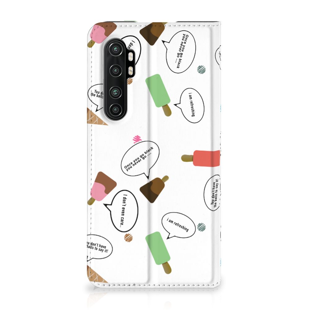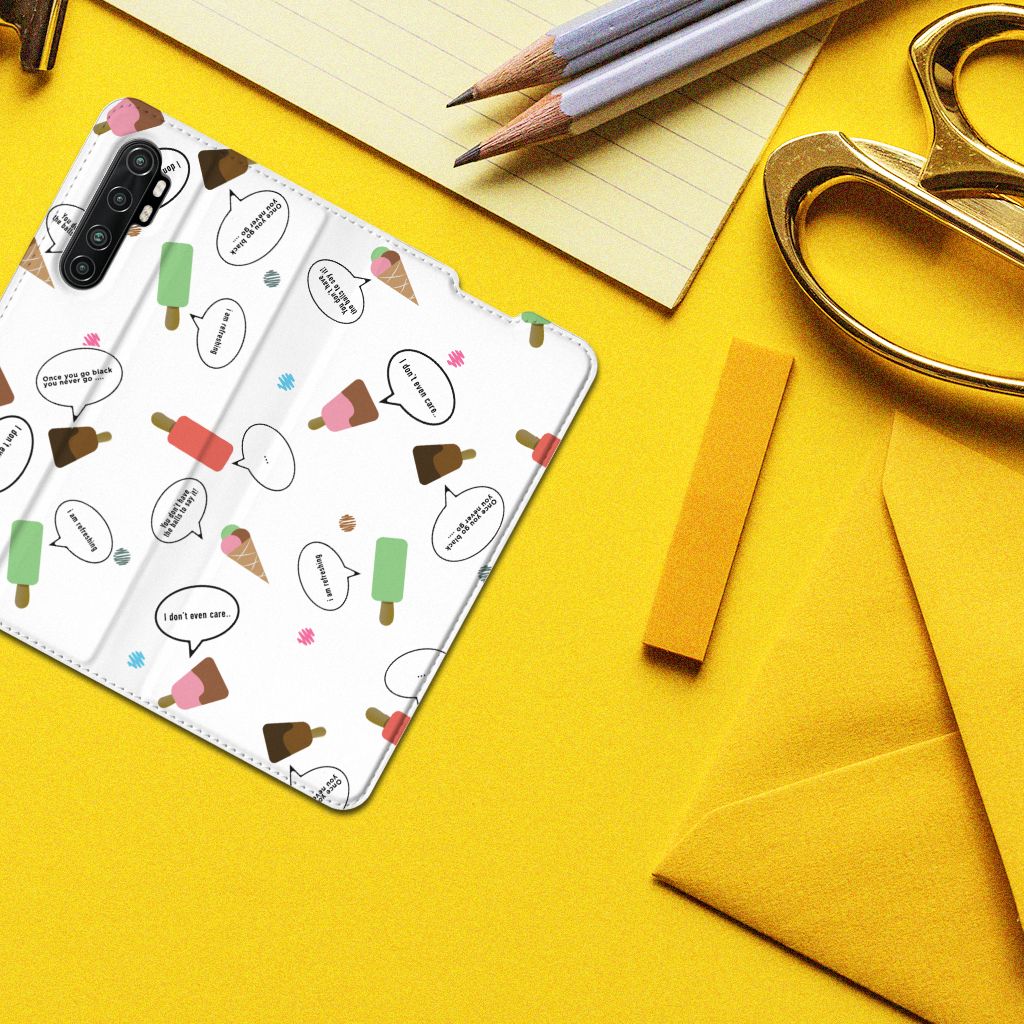 Van deze vrolijke Xiaomi Mi Note 10 Lite Flip Style Cover met daarop verschillende soorten ijsjes met tekstwolkjes krijg je sowieso een vrij en zomers gevoel. De zomer komt naar je toe met deze print van ijsjes met tekstwolkjes. Ben je op het strand, dan ontbreekt een lekker ijsje natuurlijk niet. Net zoals je je smartphone bij de hand hebt, met daaromheen een design hoesje met bijzondere ijsjes en tekstwolkjes. Jouw telefoon kan dan de bescherming in de vorm van een stand case met ijsjes zeer goed gebruiken. Alle zijden van dit hoesje worden bedrukt met ijsjes en dankzij de speciale standaard is het erg prettig om filmpjes te bekijken. De case wordt aan de binnenzijde met een magneet afgesloten en de houder aan de binnenzijde is van TPU. Onder alle weersomstandigheden zal deze case met 1 opbergvakje en ijsjes perfect functioneren, ook op het strand met een ijsje in je hand.