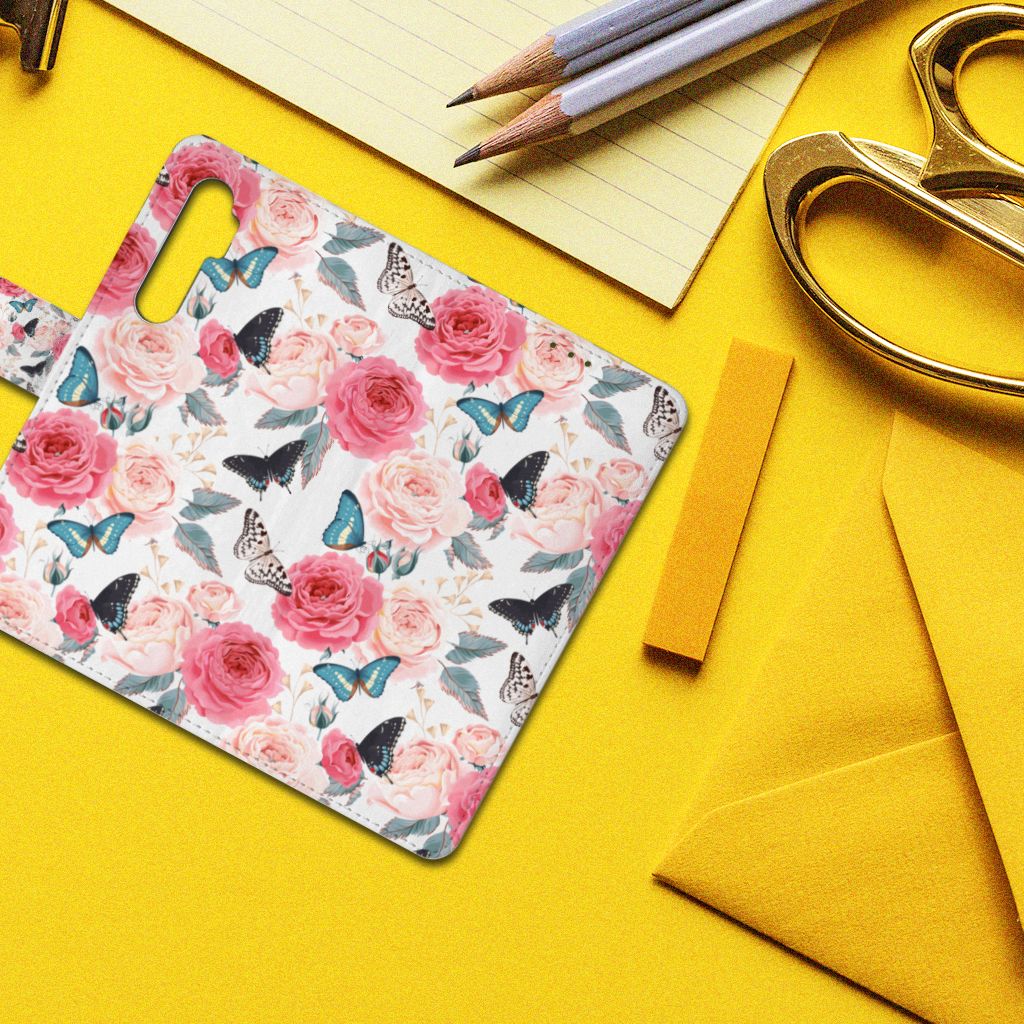 Xiaomi Mi Note 10 Lite Hoesje gemaakt van TPU en kunstleer Butterfly Roses