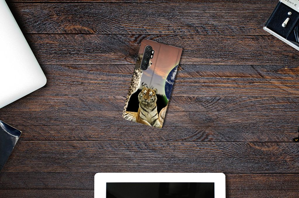 Deze standcase met roofdieren kan exclusief in het bezit van jou komen. Bovendien kun je hier zelf nog unieke teksten en/of beelden aan toevoegen. Je Hoesje maken krijgt dan een unieke identiteit. Roofdieren zoals tijgers op dit hoesje zijn voortdurend op zoek naar een geschikte prooi. De tijgers met aardbol op de achtergrond op deze stand case geven jouw Xiaomi Mi Note 10 Lite een hele stoere uitstraling. Deze bijzondere case is van PU-leer (buitenzijde) en TPU (binnenzijde) en beschikt over een houder en een speciale standaard. Verder is deze stand case met roofdieren voorzien van een magnetische sluiting aan de binnenzijde. Je zorgt voor de perfecte bescherming van je smartphone met dit design hoesje met roofdieren met aardbol op de achtergrond.