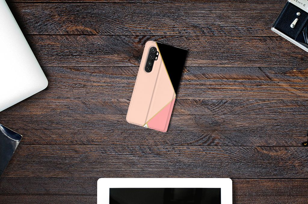 Xiaomi Mi Note 10 Lite Print Stand Case Zwart Roze Vormen