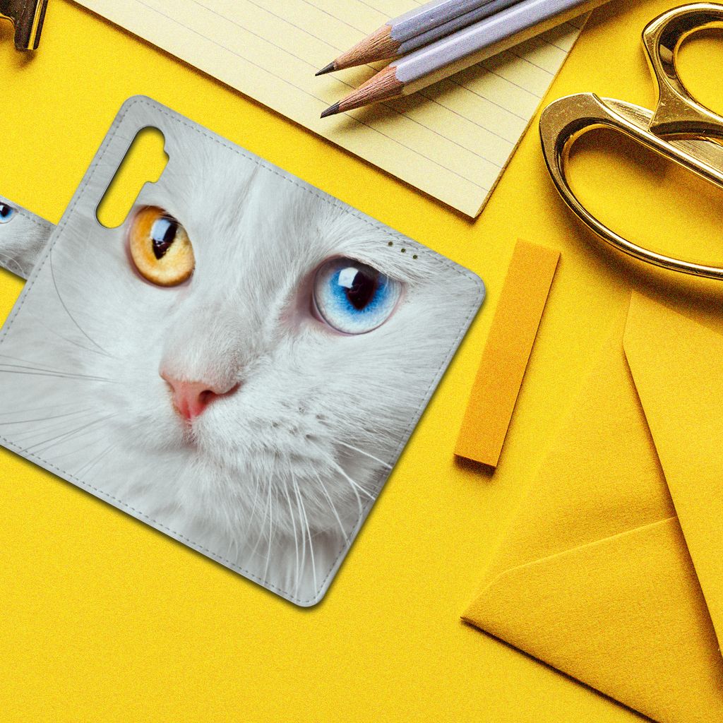 Xiaomi Mi Note 10 Lite Telefoonhoesje met magnetisch lipje als sluiting Witte Kat