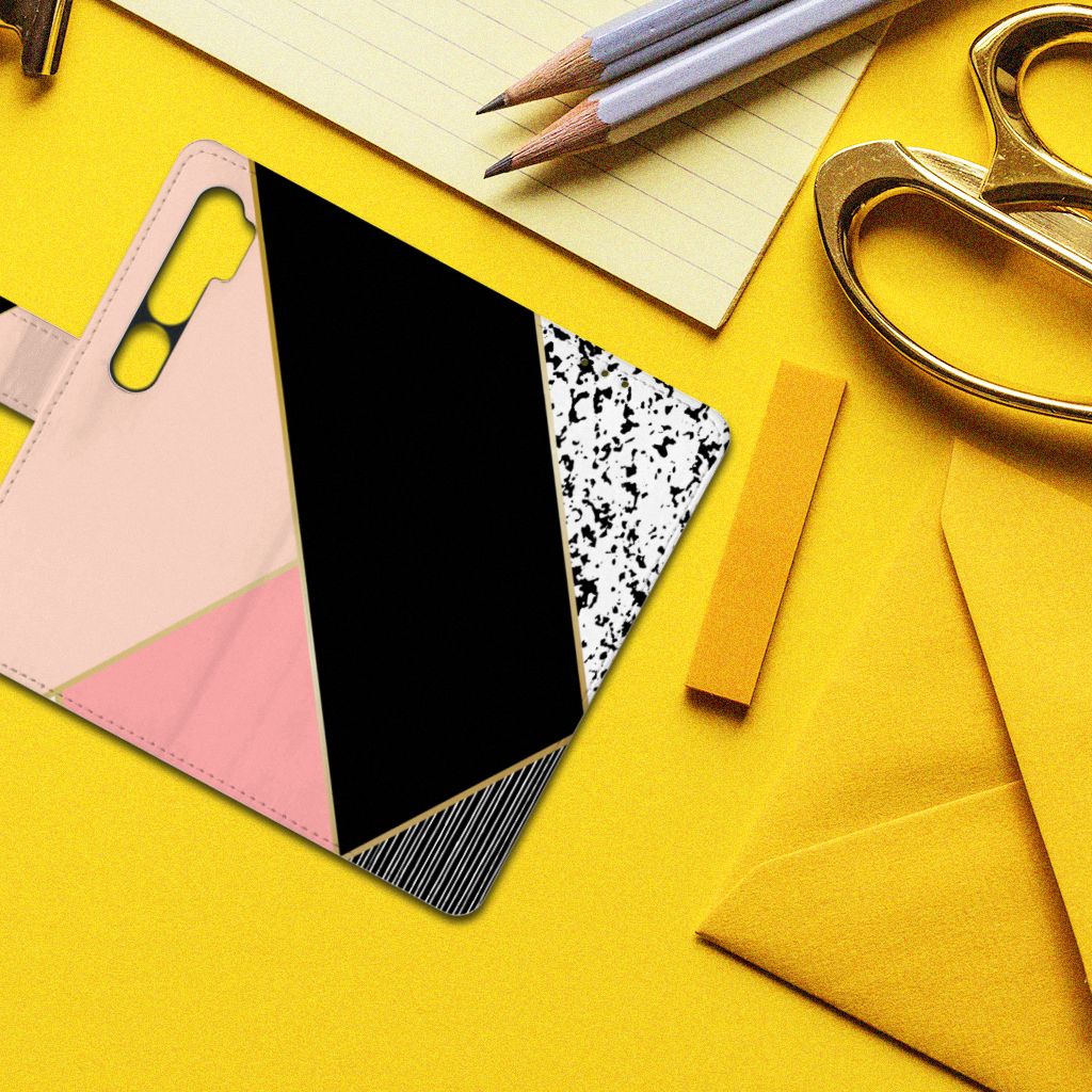 Xiaomi Mi Note 10 Pro Book Case Zwart Roze Vormen