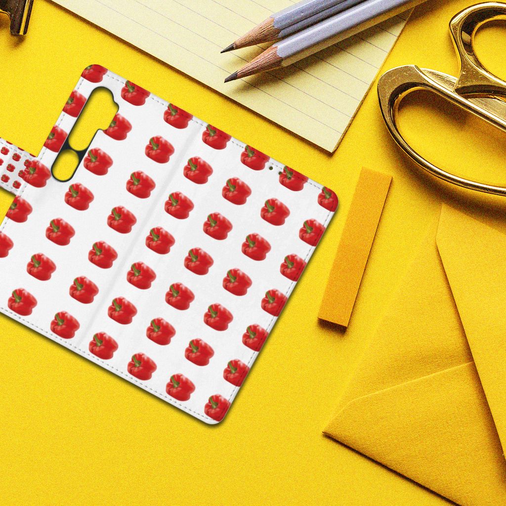 Er zit pit in jouw Xiaomi Mi Note 10 Pro Book Cover dankzij dit design met rode paprika’s. Paprika’s zijn er in allerlei kleuren en vormen en ze hebben gemeen dat ze heel erg gezond zijn. De rode paprika’s op deze case staan op een grijs met witte geblokte achtergrond en vormen een opvallende verschijning. Heb jij ooit iemand in je nabije omgeving rond zien lopen met een design hoesje met rode paprika’s? Waarschijnlijk niet. Dit boekhoesje met rode paprika’s beschermt jouw telefoon aan alle zijden en beschikt over verschillende opbergvakjes voor pasjes en briefgeld. De case sluit perfect af met het magnetische lipje aan de buitenkant. Zeker weten dat je met dit hoesje met rode paprika’s een smartphone accessoire te pakken hebt waarmee je jezelf in de schijnwerpers zet. De houder aan de binnenzijde van het boekhoesje met rode paprika’s is van TPU. Als je andere kleuren paprika’s op je hoesje wilt, raden we je aan ons assortiment design hoesjes te bekijken of zelf een hoesje te ontwerpen.