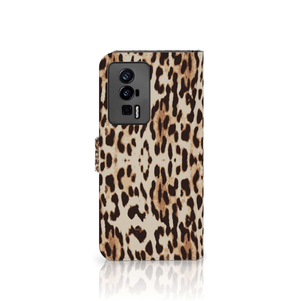 Xiaomi Poco F5 Pro Telefoonhoesje met Pasjes en met magnetische sluitclip Leopard