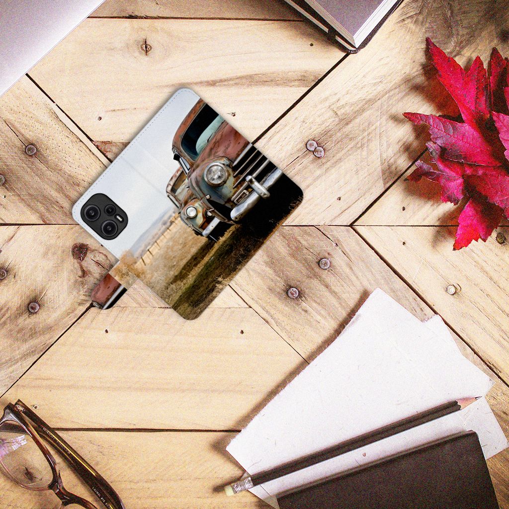 Xiaomi Poco F5 Telefoonhoesje met ruimte voor 3 pasjes Vintage Auto