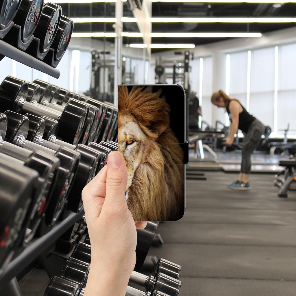 Xiaomi Poco F5 Telefoonhoesje met Pasjes en met magnetische sluitclip Leeuw