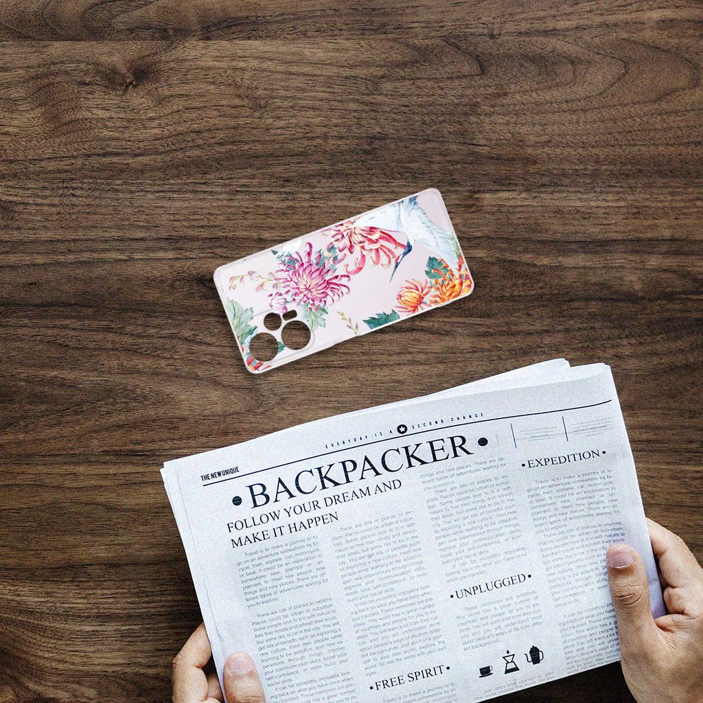 Verspreid over de hele wereld leven 19 soorten ooievaars. De spanwijdte – dat is de afstand van vleugeltip tot vleugeltip – van een volwassen ooievaar kan 2.50 meter bedragen. De gebieden waarin de ooievaar broedt, liggen in heel Europa, het Midden-Oosten, West- en Centraal-Azië en Noordwest-Afrika. Het ideale leefgebied van de ooievaar is een half open tot open landschap met veel afwisseling in grondgebruik en begroeiing. De begroeiing op dit design hoesje, in allerlei verschillende kleuren, zal niet alleen voor de ooievaars fraai zijn. Jij zult er zelf ook heel vrolijk van worden. Het in het oog springende design staat op een TPU Hoesje. Dit telefoonhoesje wordt alleen aan de bovenkant bedrukt en is zeer flexibel. De randen van het hoesje blijven transparant en worden niet bedrukt. Met dit hoesje past jouw Xiaomi Poco F5 altijd in je broekzak.
