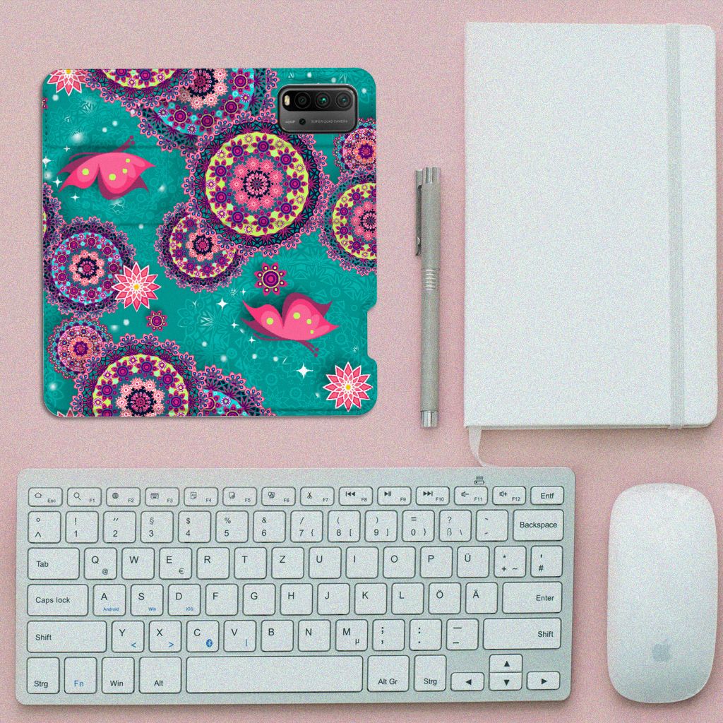 Deze opvallende Xiaomi Poco M3 | Redmi 9T Bookcase met Cirkels en Vlinders is een ware eyecatcher. De meeste vlinders hebben een onopvallende vleugelkleur en dat kun je van de soort op dit hoesje ook zeker wel zeggen. Wij kunnen deze opvallende vlinders en cirkels op een zeer handige stand case zetten. Deze hoesjes zijn zeer gewild. Met onze geavanceerde printer zetten we de print van opvallende vlinders en cirkels op alle zijden van het hoesje. De case met vlinders heeft aan de binnenkant een houder waarin je jouw creditcard of ander pasje kwijt kunt. De case heeft bovendien een handige standaard. Verder is je telefoon natuurlijk maximaal beschermd met deze stand case met print van opvallende en kleurrijke vlinders. De houder aan de binnenzijde van het design hoesje met opvallende vlinder print is van TPU.