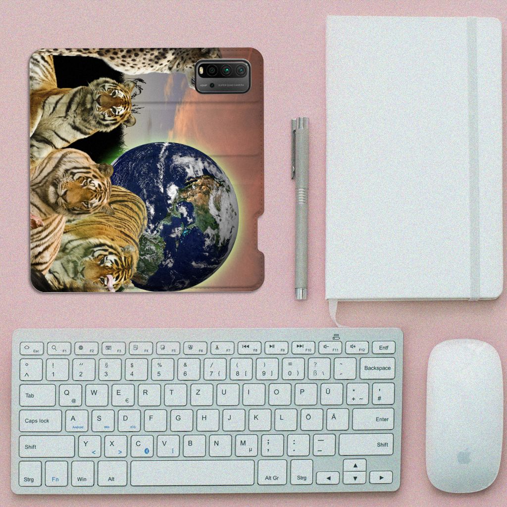 Deze standcase met roofdieren kan exclusief in het bezit van jou komen. Bovendien kun je hier zelf nog unieke teksten en/of beelden aan toevoegen. Je Hoesje maken krijgt dan een unieke identiteit. Roofdieren zoals tijgers op dit hoesje zijn voortdurend op zoek naar een geschikte prooi. De tijgers met aardbol op de achtergrond op deze stand case geven jouw Xiaomi Poco M3 | Redmi 9T een hele stoere uitstraling. Deze bijzondere case is van PU-leer (buitenzijde) en TPU (binnenzijde) en beschikt over een houder en een speciale standaard. Verder is deze stand case met roofdieren voorzien van een magnetische sluiting aan de binnenzijde. Je zorgt voor de perfecte bescherming van je smartphone met dit design hoesje met roofdieren met aardbol op de achtergrond.