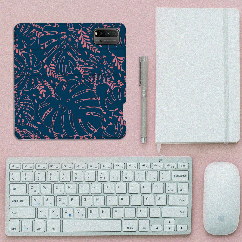 Je voelt je verbonden met de natuur als je kiest voor deze Xiaomi Poco M3 | Redmi 9T Smart Cover met print van roze bladeren op een blauwe achtergrond. De print bestaat uit verschillende roze bladeren en dit zorgt voor een fraai decoratief geheel. Met dit patroon van roze bladeren op een blauwe achtergrond creëer je een opvallende uitstraling voor jouw smartphone. Jij doet er verstandig aan om je telefoon te beschermen met dit design hoesje met roze bladeren op een blauwe achtergrond, die staan op een stand case. Dit hoesje kenmerkt zich onder meer door het handige vakje aan de binnenzijde en de magnetische sluiting aan de binnenzijde. Voel jij jezelf happy bij een beeld van roze bladeren op een blauwe achtergrond, dan is deze stand case met print een uitstekende optie. Het beschermt jouw telefoon aan alle zijden. Het TPU aan de binnenzijde klemt zich perfect om jouw smartphone.