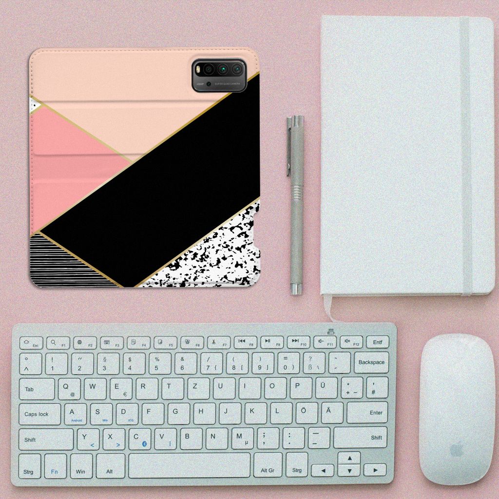 Xiaomi Poco M3 | Redmi 9T Print Stand Case Zwart Roze Vormen