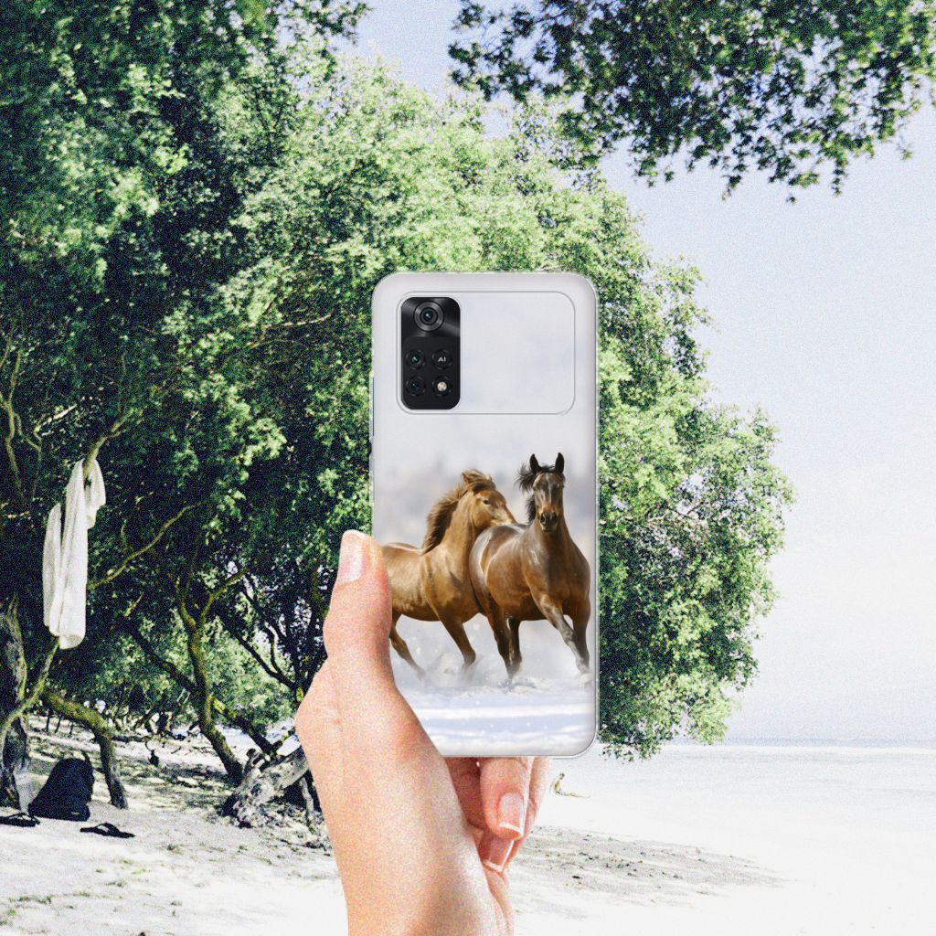 Voor de paardenliefhebbers onder ons hebben we onze collectie uitgebreid met dit design hoesje met print van paarden. Vroeger hield de mens vooral werkpaarden, inmiddels hebben we vriendschap gesloten met het paard. Vandaar dat het ook een favoriet dier is op onze smartphonehoesjes, zoals deze tpu case. Een TPU Hoesje voor de Xiaomi Poco M4 Pro 4G met Paarden is niet alleen super mooi en chique, maar ook nog eens zeer flexibel. Verder is de case schokabsorberend en heeft het opstaande randen. Zie je liever je eigen paard terug op een hoesje. Dat kan! Door zelf een uniek hoesje te ontwerpen, met eigen foto’s en teksten. De TPU case wordt aan de bovenzijde bedrukt, de zijkanten blijven transparant.