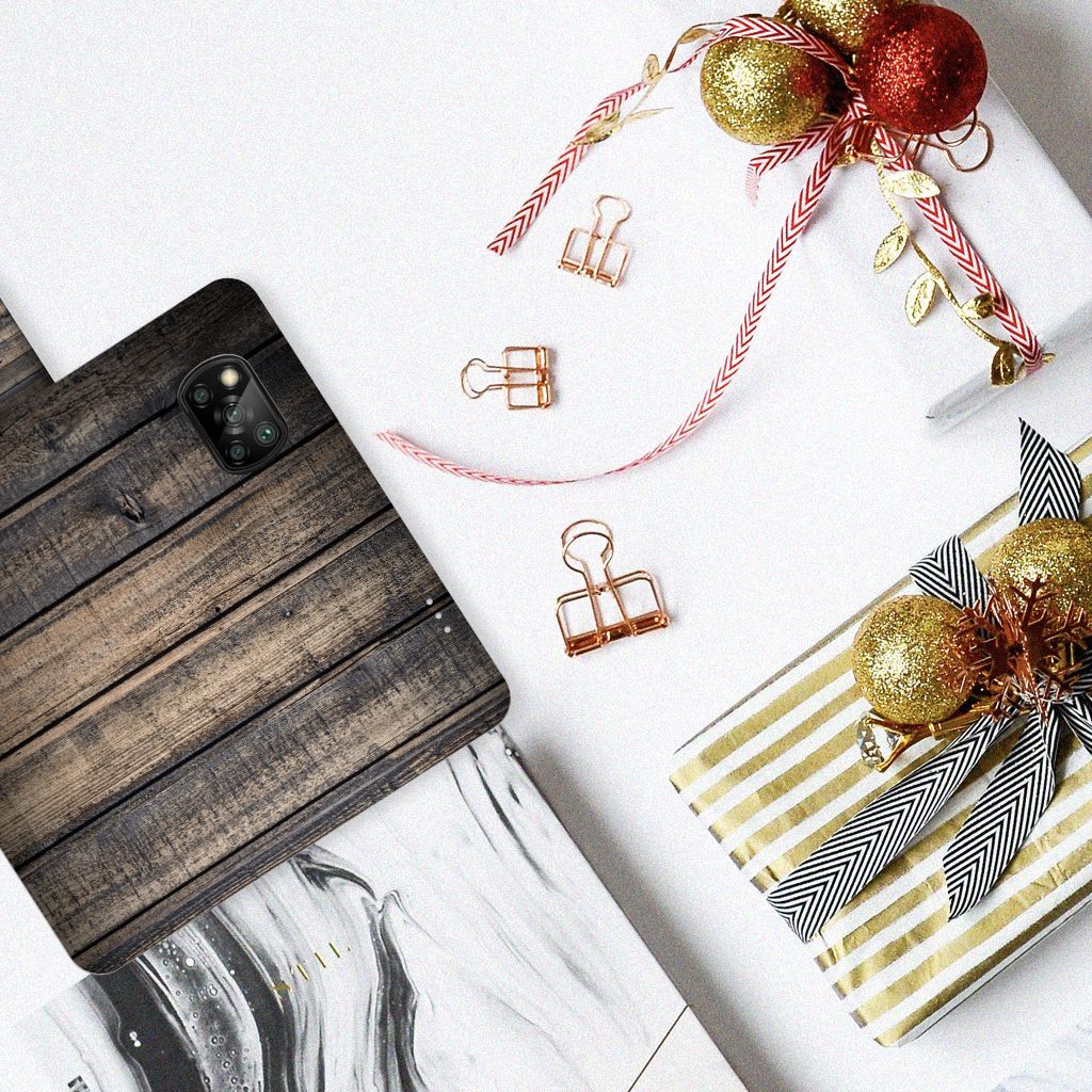 Xiaomi Poco X3 | Poco X3 Pro Bookstyle Case met ruimte voor 3 pasjes Steigerhout
