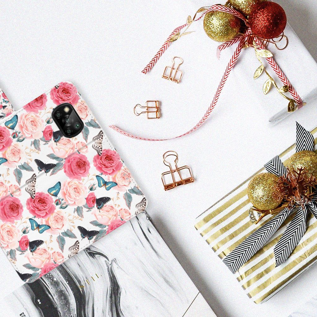 Xiaomi Poco X3 | Poco X3 Pro Hoesje gemaakt van TPU en kunstleer Butterfly Roses