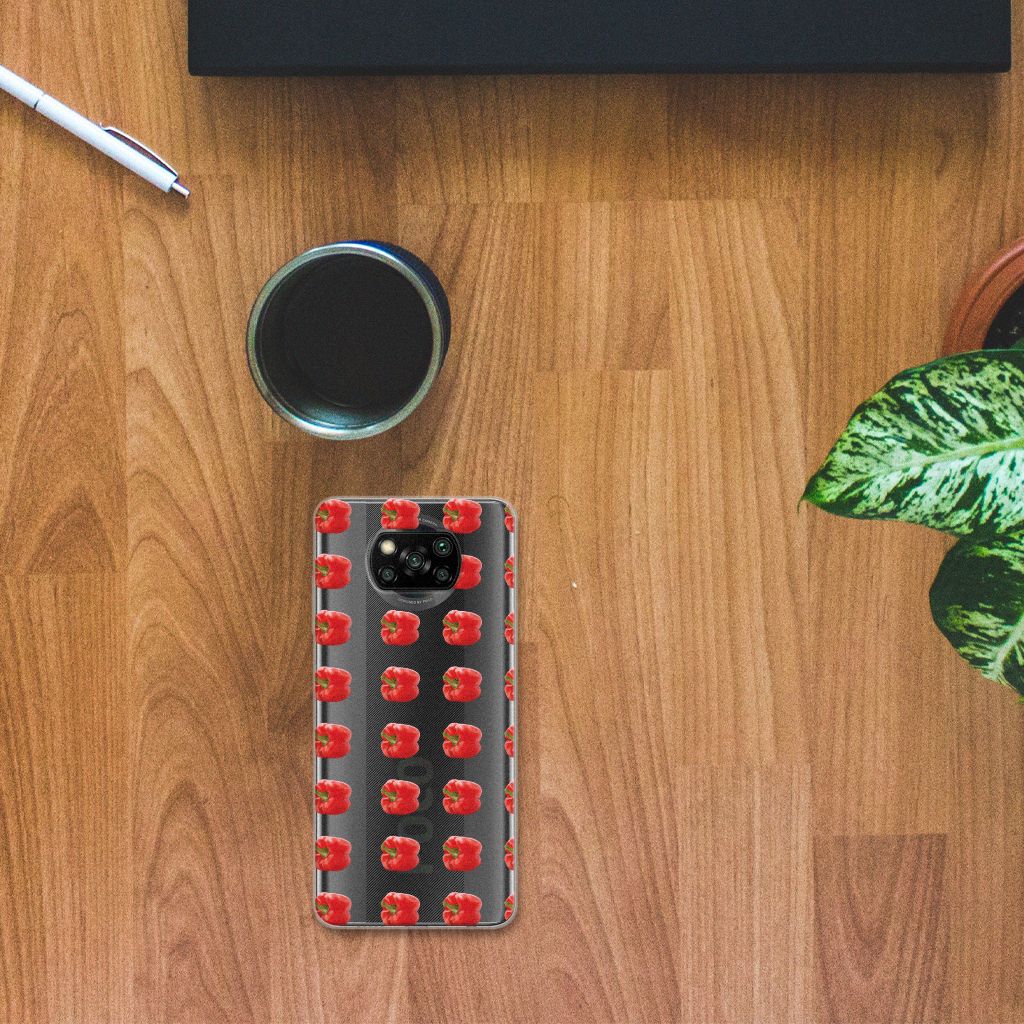 Er zit pit in jouw Xiaomi Poco X3 | Poco X3 Pro Siliconen Case dankzij dit design met rode paprika’s. Paprika’s zijn er in allerlei kleuren en vormen en ze hebben gemeen dat ze heel erg gezond zijn. De rode paprika’s op deze case staan op een grijs met witte geblokte achtergrond en vormen een opvallende verschijning. Heb jij ooit iemand in je nabije omgeving rond zien lopen met een design hoesje met rode paprika’s? Waarschijnlijk niet. Dit hoesje wordt alleen aan de bovenkant bedrukt met paprika’s en is zeer flexibel. De randen van het hoesje blijven transparant en worden niet bedrukt. Met dit hoesje past jouw telefoon altijd in je broekzak. Zeker weten dat je met dit hoesje met rode paprika’s een smartphone accessoire te pakken hebt waarmee je jezelf in de schijnwerpers zet. Als je andere kleuren paprika’s op je hoesje wilt, raden we je aan ons assortiment design hoesjes te bekijken of zelf een hoesje te ontwerpen.