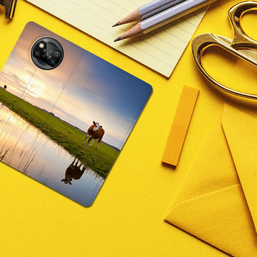 Het levert een idyllisch plaatje op, dit hoesje met een koe en ondergaande zon op de achtergrond. Door een koe buiten te laten lopen en grazen, hebben ze minder kans om ziek te worden. De Koe graast het liefst met soortgenoten, al zijn deze een stukje van de koe op de case verwijderd. Dit levert ook een mooi plaatje op, zoals je kunt zien op dit design hoesje. Deze stand case ziet er strak uit en is voorzien van verschillende uitsparingen. Een Xiaomi Poco X3 Pro | Poco X3 Hoesje maken met magneet aan de binnenzijde beschermt jouw smartphone overal. Alle zijden zijn bedrukt. Koeien hebben lange graasperioden nodig, afgewisseld door rust- en herkauwperioden. Zo goed als grazen voelt voor koeien, zo lang zal jouw design hoesje meegaan. De binnenkant van de stand case is van TPU, de buitenzijde van leer.