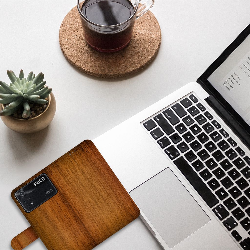 Xiaomi Poco X4 Pro 5G Book Style Case met pasjeshouder Donker Hout