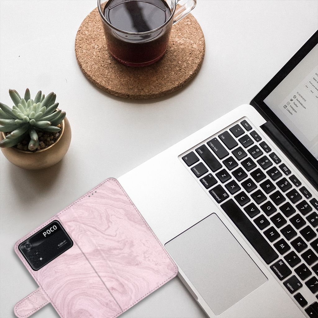 Xiaomi Poco X4 Pro 5G Bookcase met magnetische sluitclip Marble Pink