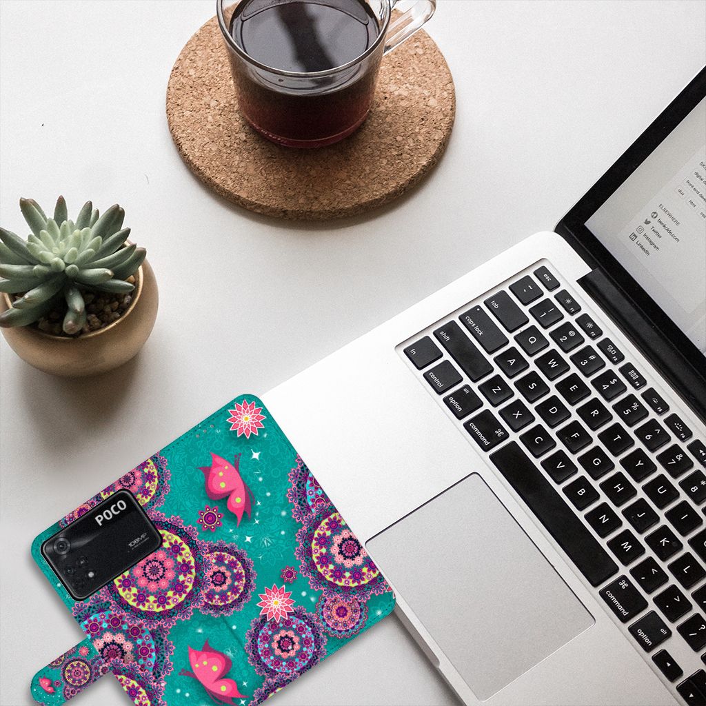 Xiaomi Poco X4 Pro 5G Hoesje met pasjes Cirkels en Vlinders